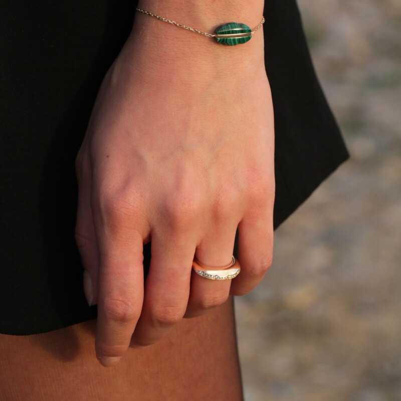 The Megève ring weighs 7.58 grams. The 20 diamonds add a touch of luxury and glamour to the piece, and the yellow gold offers a warm, classic contrast. It's a magnificent combination of several diamond cuts for a total of 0.216 carats of GSI quality.