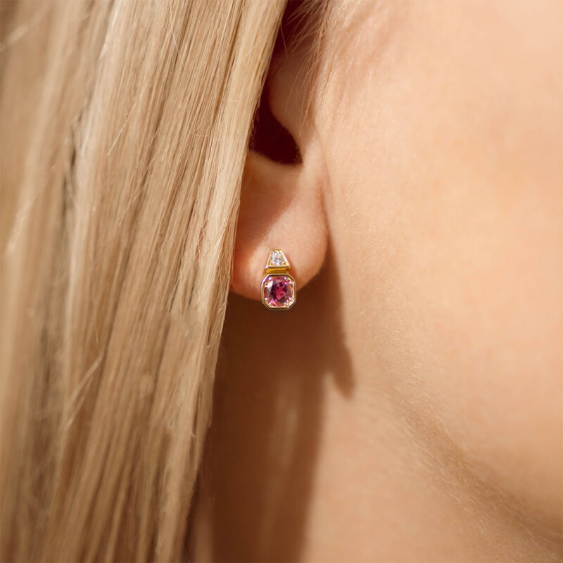 Handcrafted by our experienced artisans, each earring features a sparkling 0.035-carat diamond and a delicately set 0.25-carat pink tourmaline. Each stone is carefully selected for its exceptional quality and incomparable brilliance, to offer you a unique and remarkable jewel weighing 2.78 grams.