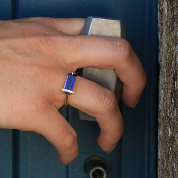 Comme tout amateur de bijou le sait, la pièce parfaite est une question de détails. C’est certainement le cas de la bague Corset Façonnier. Elle est réalisée avec une pierre Iolite de taille rectangle de 12×5 mm qui est une trouvaille rare avec sa couleur bleue profonde éblouissante. Les pierres d’accentuation en diamant sont la touche finale parfaite, ajoutant juste une touche d’éclat. Les 6 diamants font 1,2 mm de diamètre (qualité GSI). La bague est également très légère, puisqu’elle ne pèse que 2,85 grammes en or jaune 18k. La bague Façonnier est un parfait exemple de bijou à la fois élégant et durable.