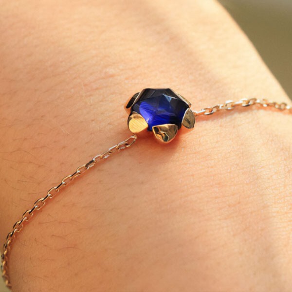 L’inspiration pour cette collection est venue du bleu profond d’une fleur d’iris. La forme et la texture nous ont amenés à créer une robe au design simple et élégant qui peut être portée par n’importe qui, n’importe où et n’importe quand – c’est le bracelet parfait à porter au quotidien !