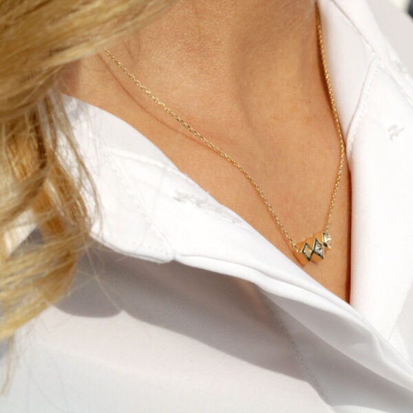 Lorsque vous pensez à un solitaire, vous imaginez probablement un design simple et classique avec un seul diamant au centre. Le collier Louvre est une version unique de solitaire qui ne manquera pas de faire tourner les têtes. Le diamant de 0,07 carat au centre est de qualité GSI, il est entouré de 2,44 grammes d’or jaune 18 carats. Le résultat est un collier étonnant, unique en son genre, qui ne manquera pas d’impressionner. Si vous cherchez quelque chose de différent du solitaire traditionnel, la collection Louvre vaut vraiment le coup d’œil.